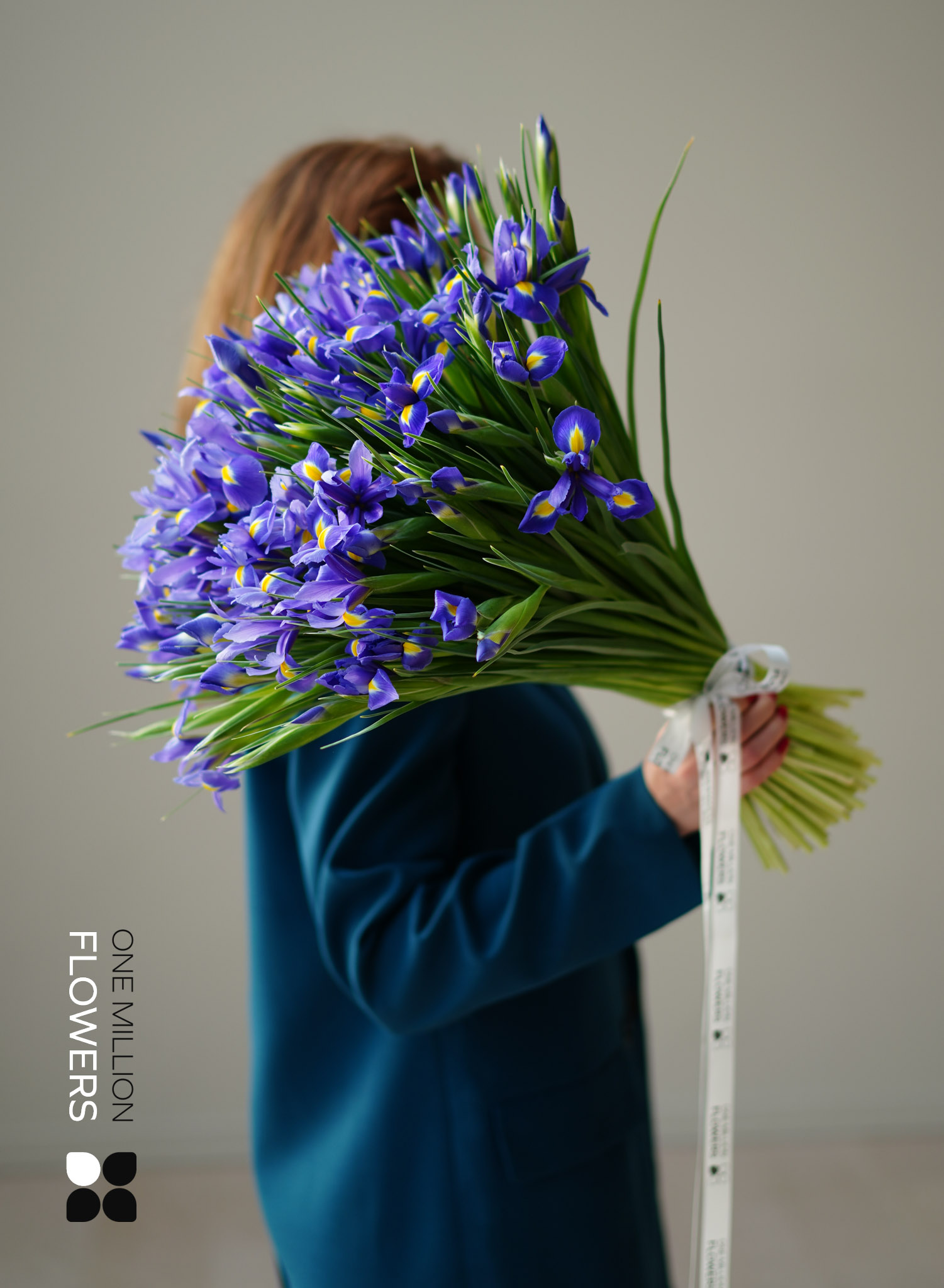 Состав букета: Ирисы синие — 101 шт.