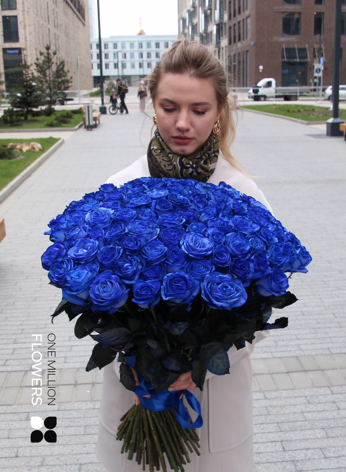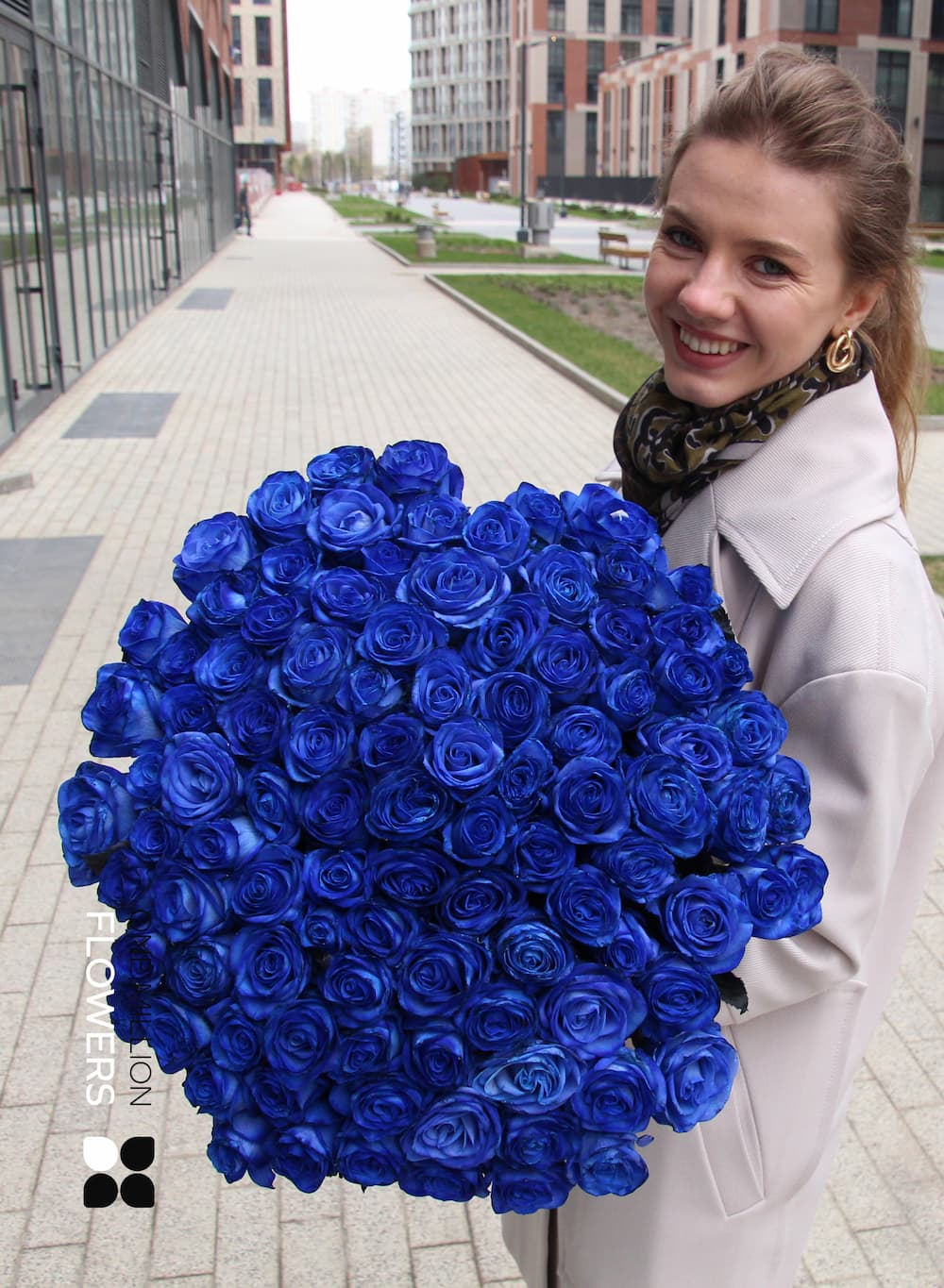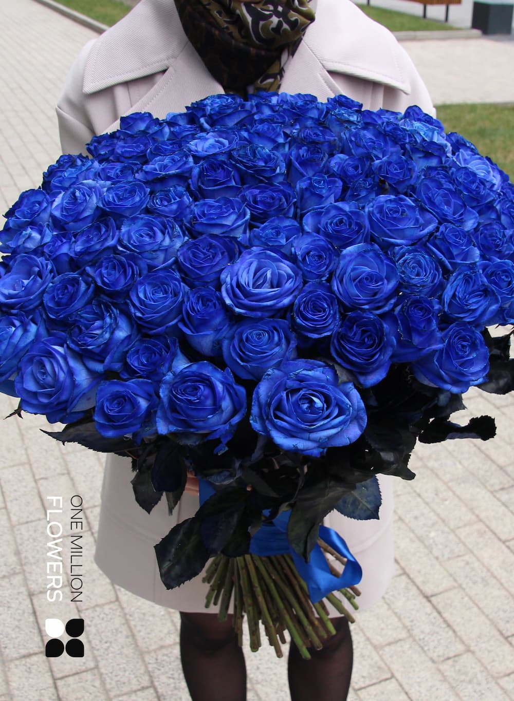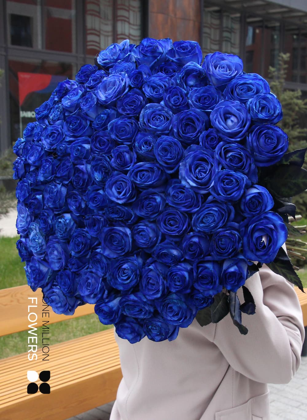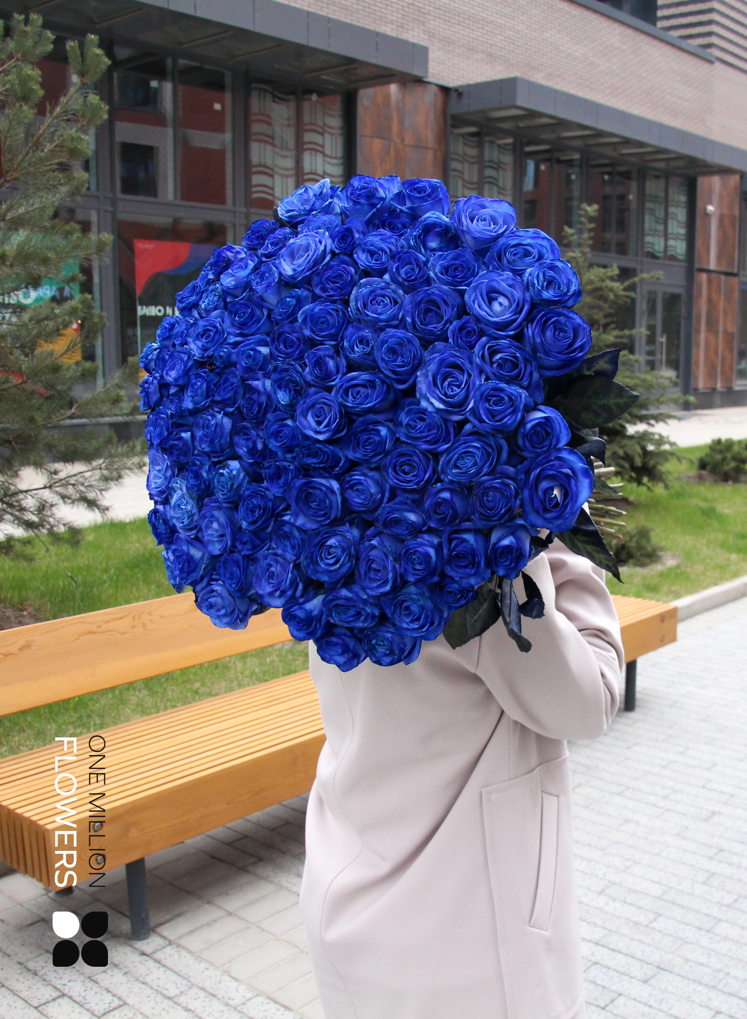 "Букет из 101 розы "Блю Маунтин": волшебная красота и нежность синих оттенков"