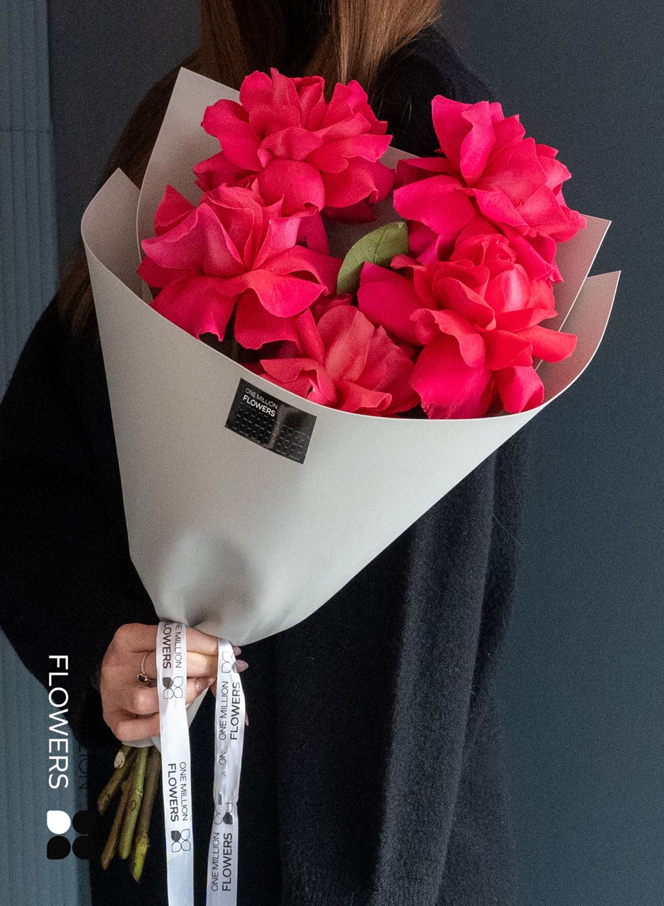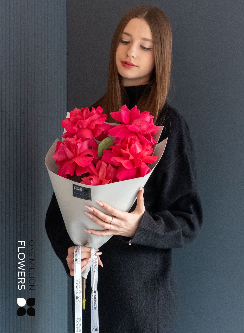 В нашем букете вы найдете 5 штук розы "Розовая Эквадор Пинк Флойд". Каждая роза сочетает в себе великолепие природы с заботой о деталях, что делает их идеальным украшением для любого торжества или уюта домашнего пространства.