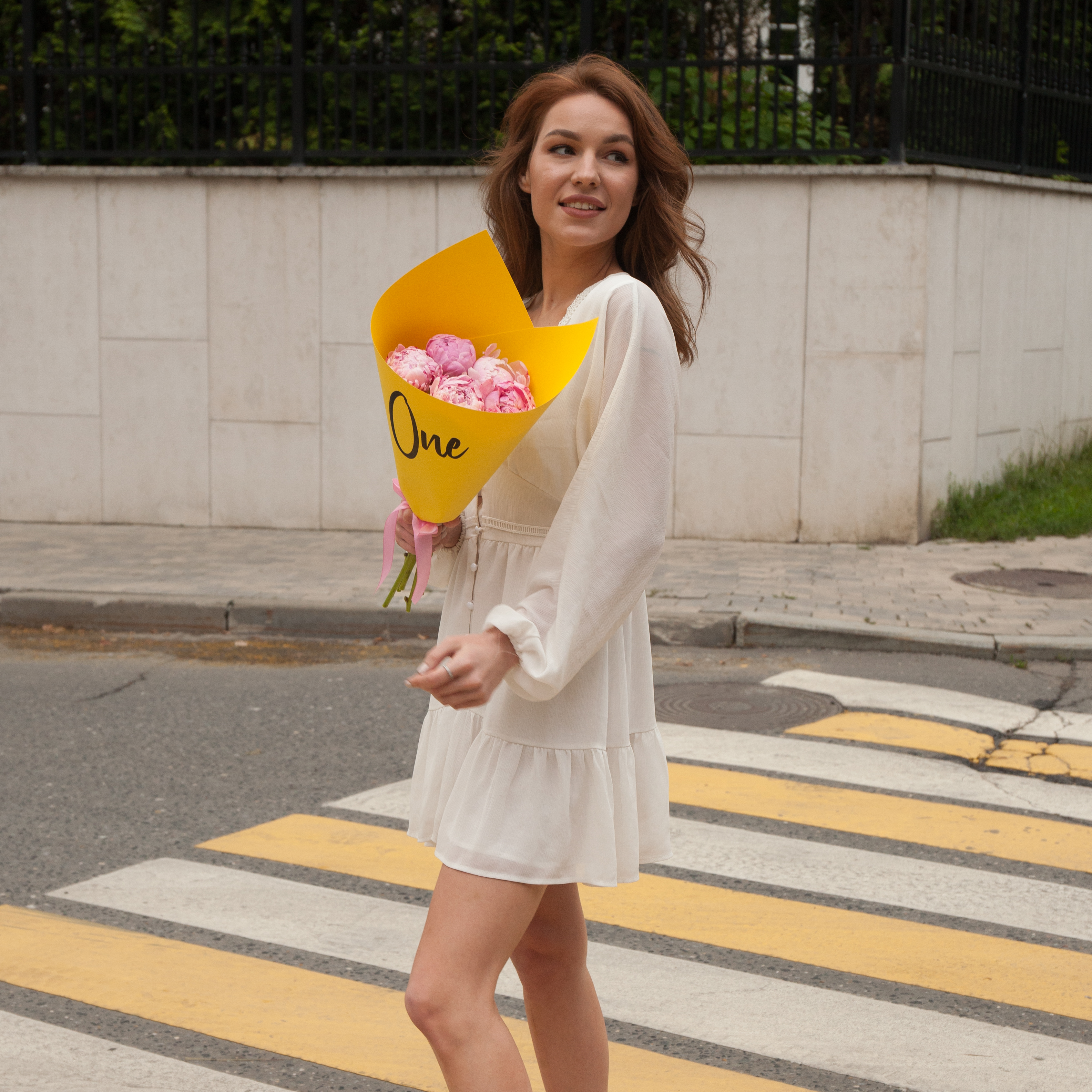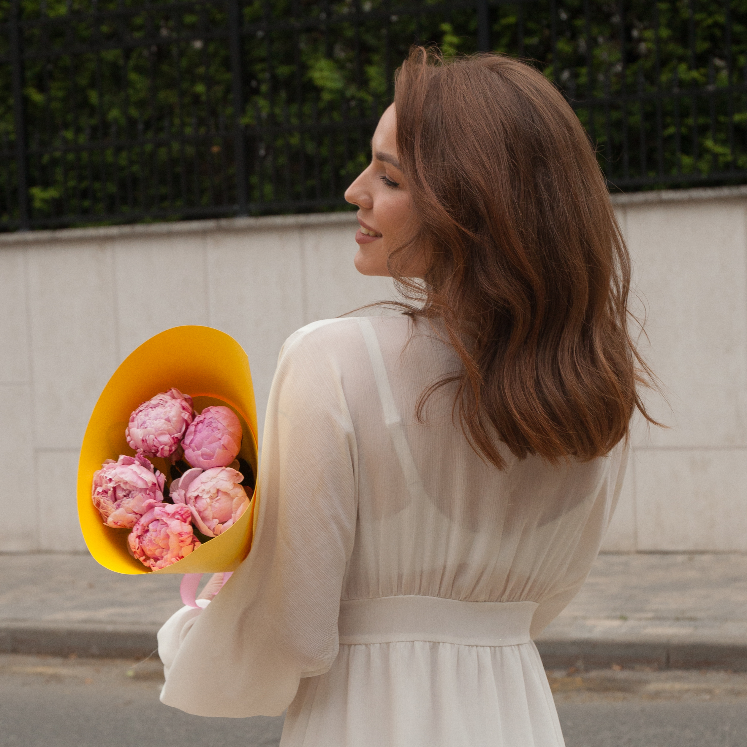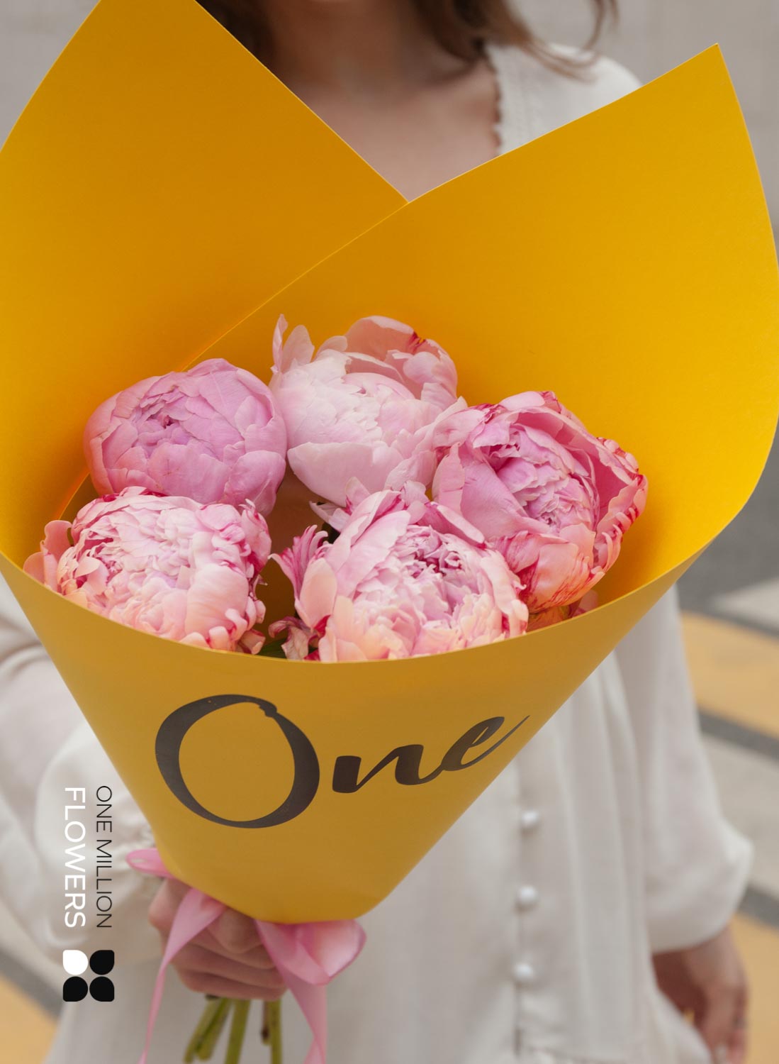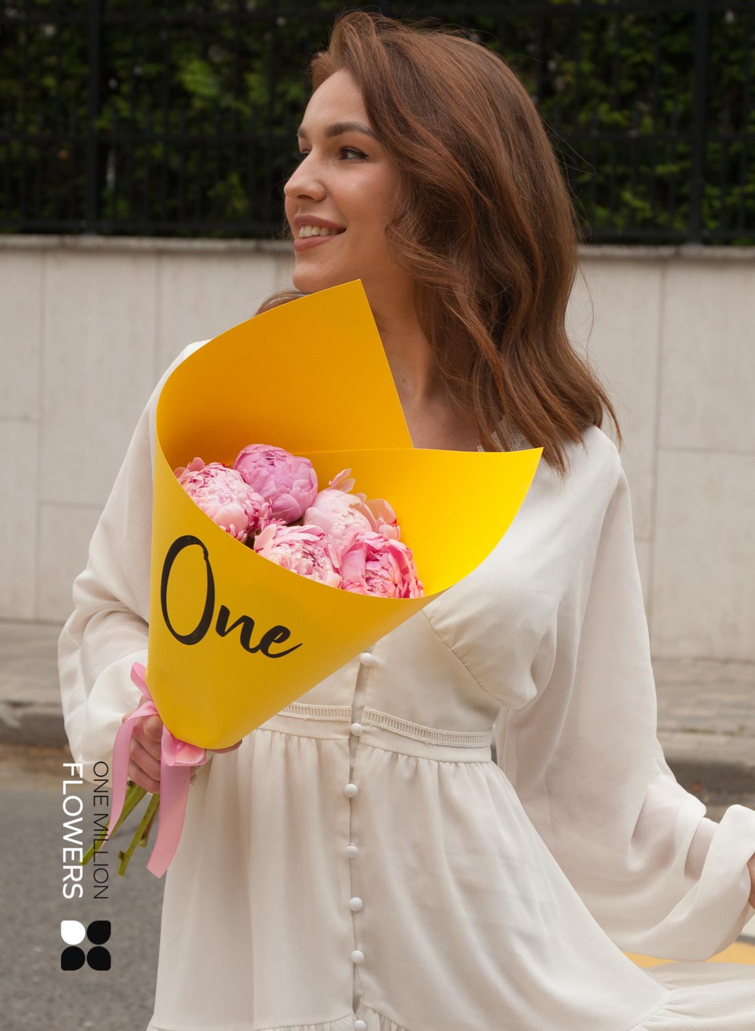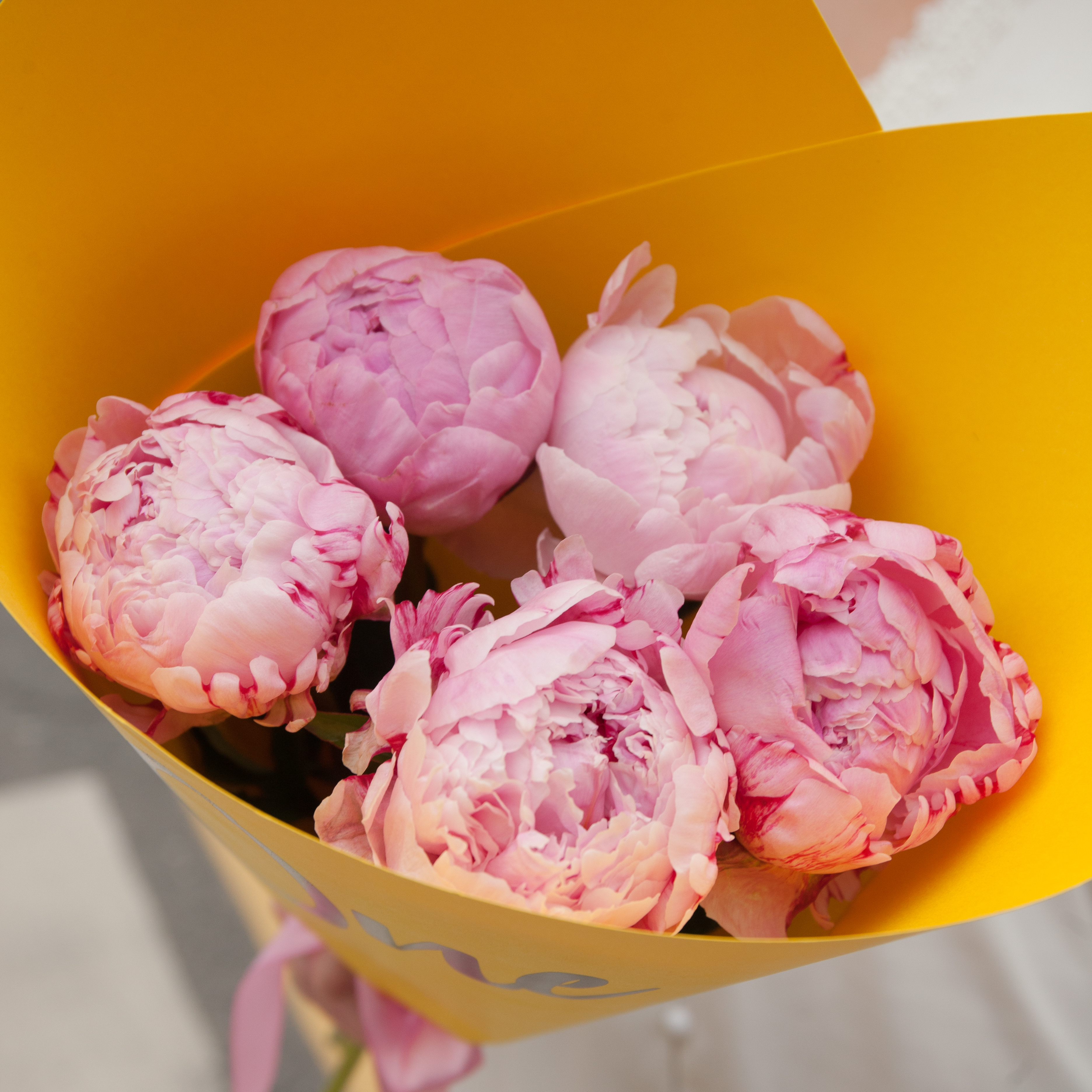 Букет из 5 розовых пионов "Сара Бернар" Yellow One