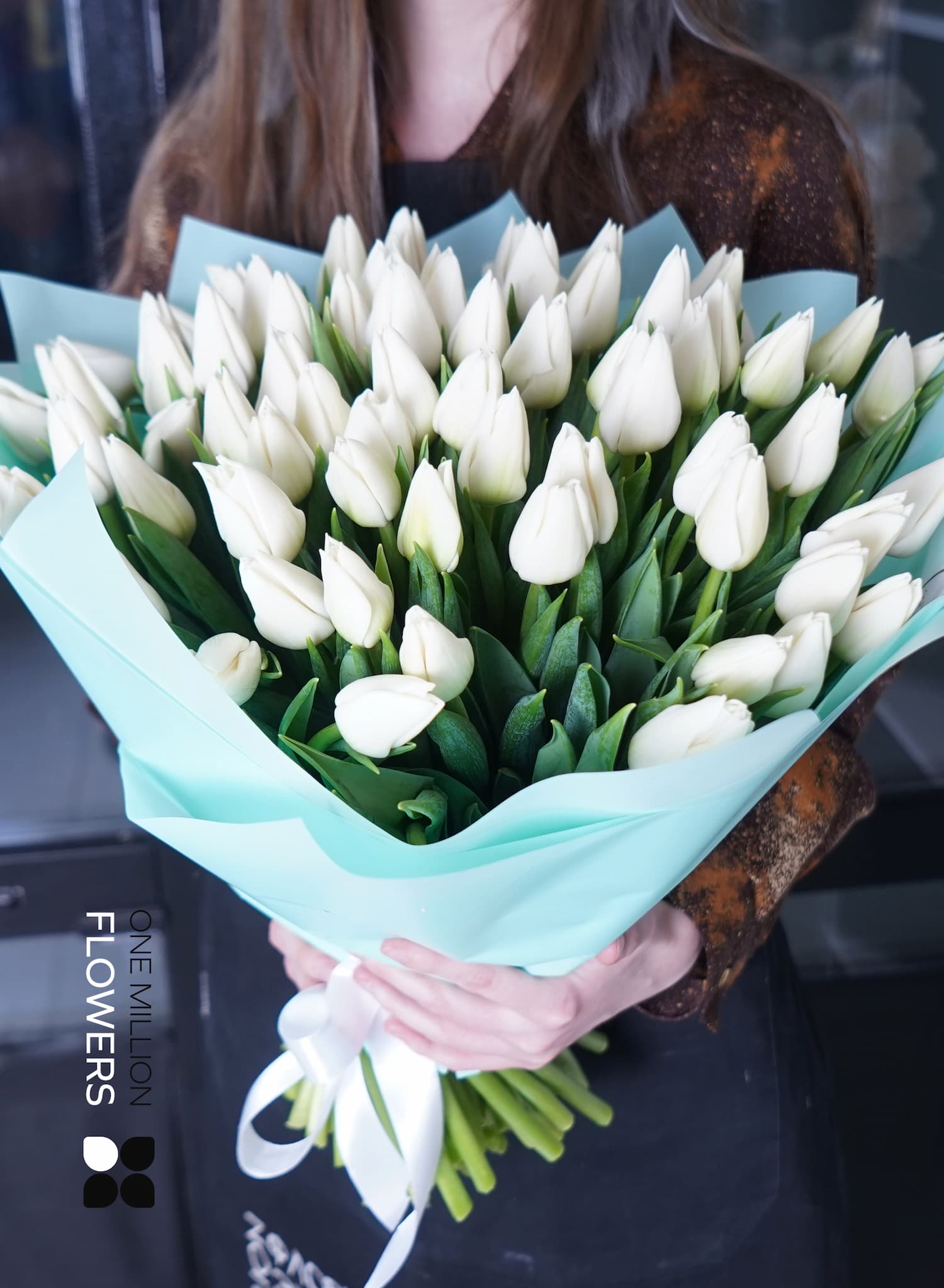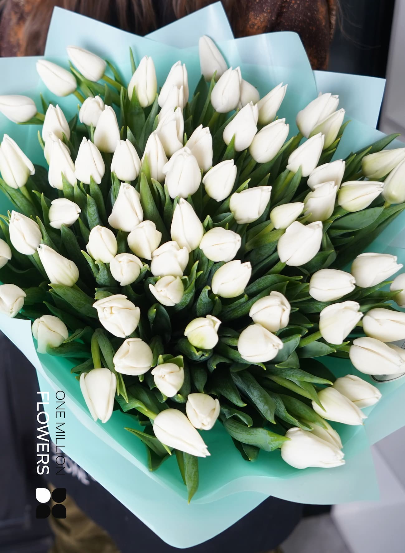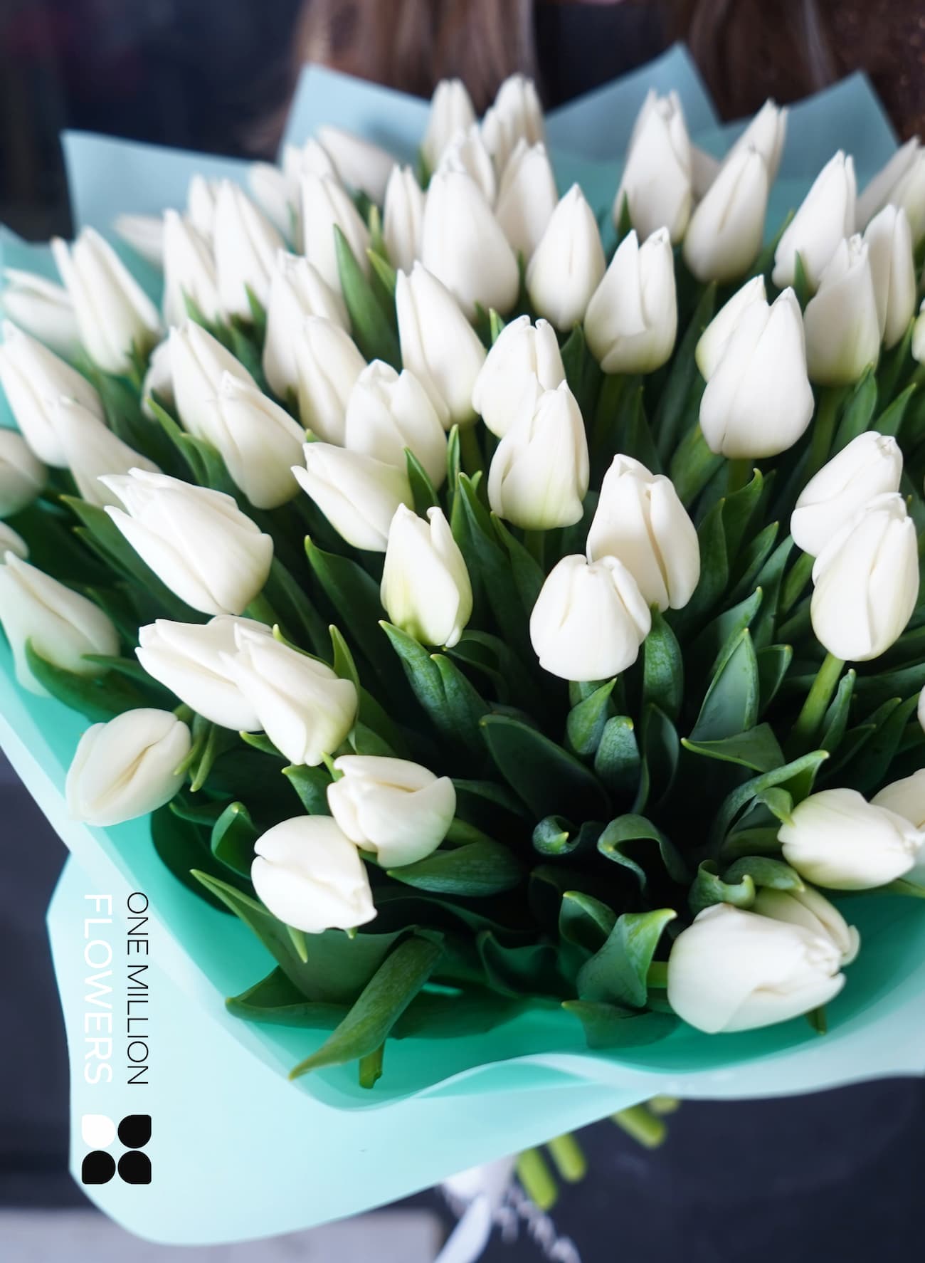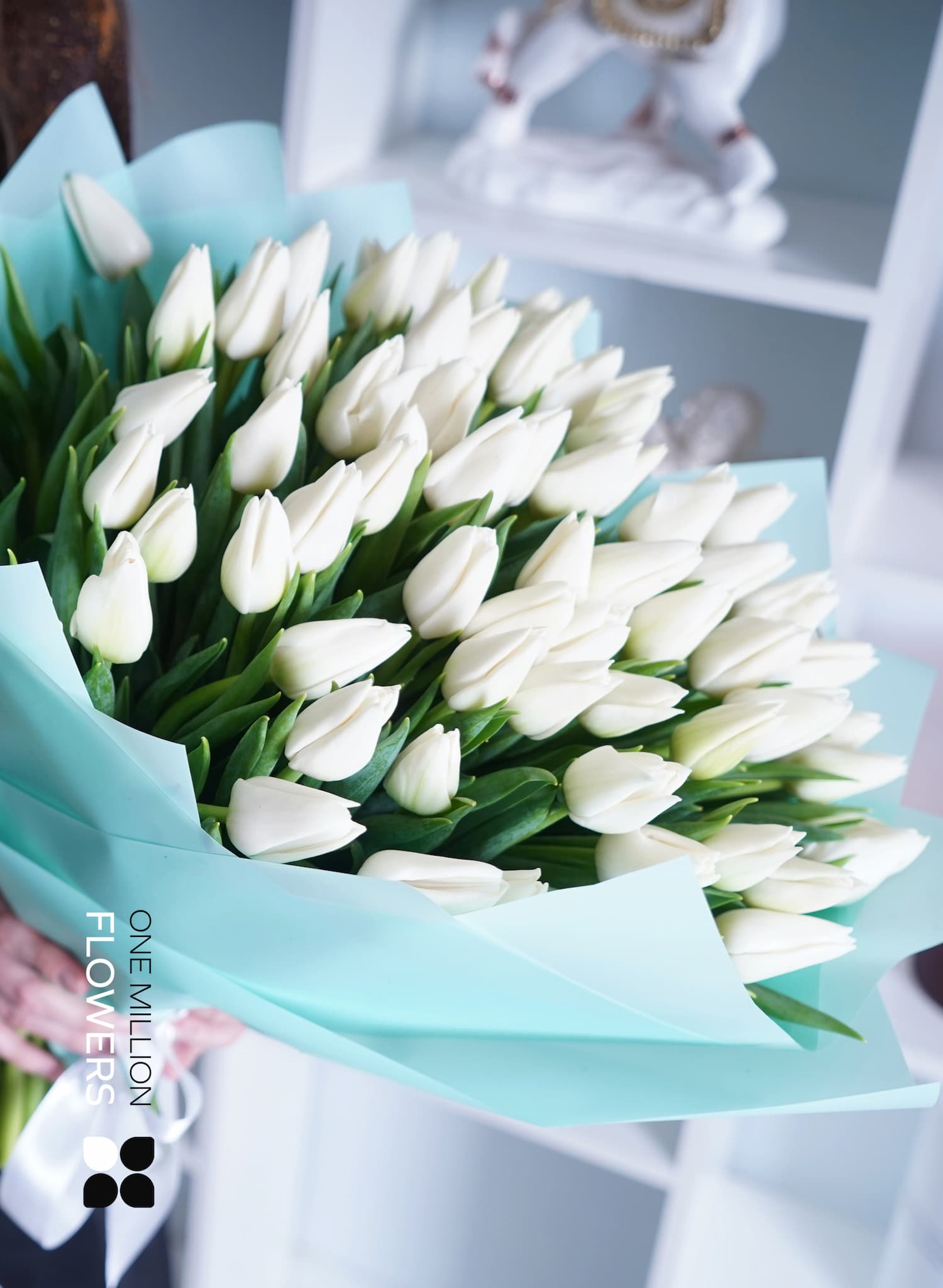 Белые тюльпаны в этом букете являются выразителями чистоты и преданности. Их свежесть и яркий аромат делают этот букет не только приятным для глаз, но также доставляют наслаждение вашему обонянию.