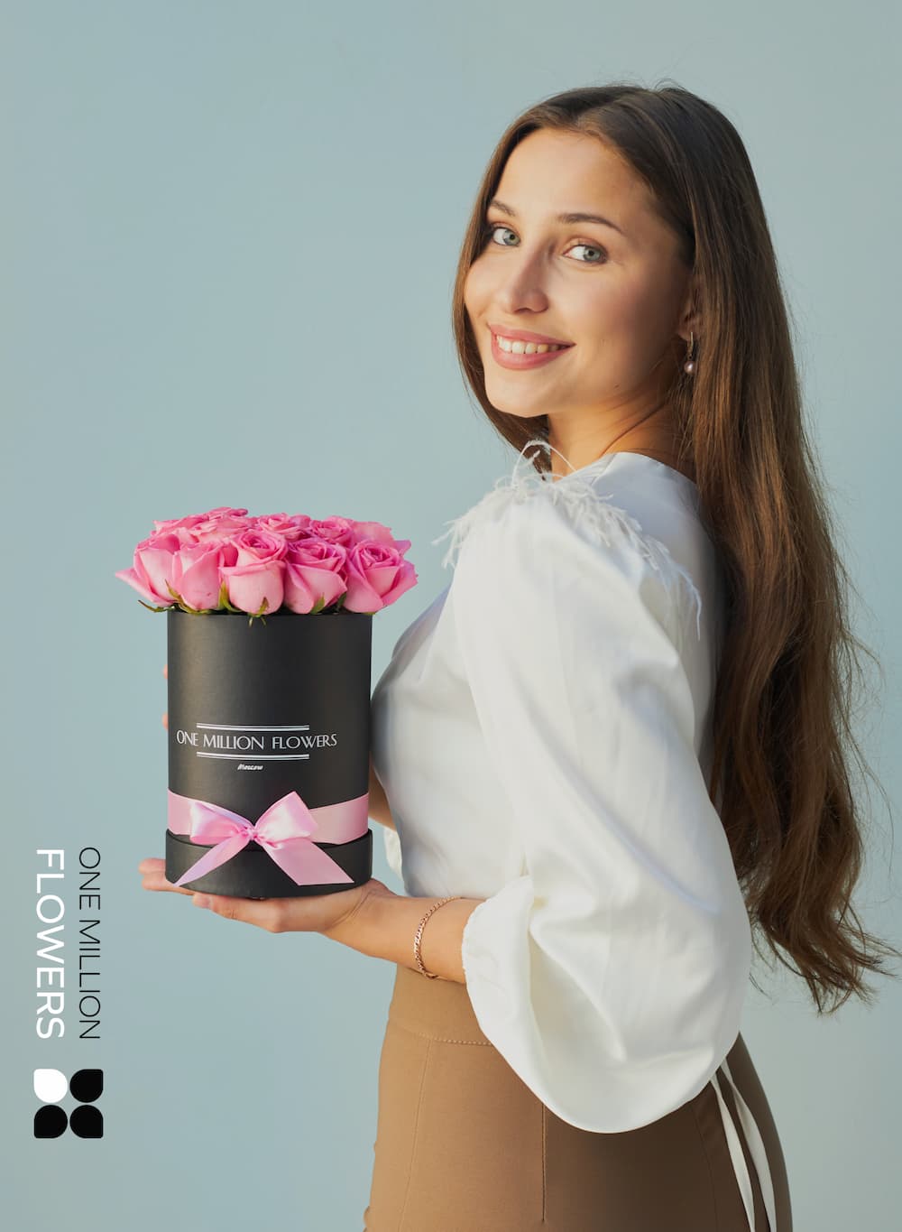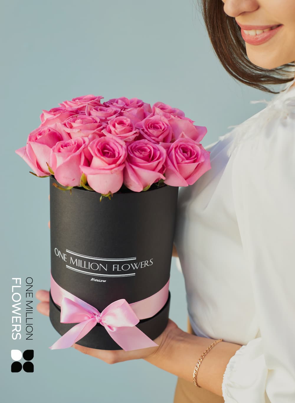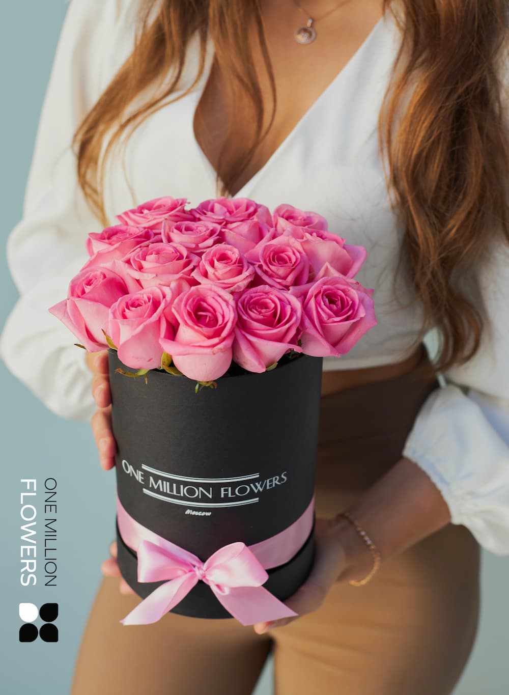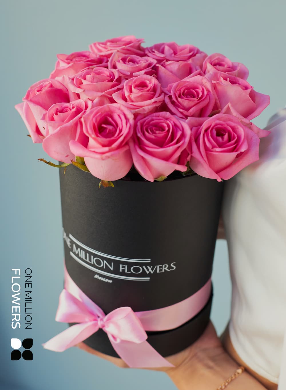 В комплекте вы найдете 19 шикарных роз Розовой 40, которые символизируют любовь, красоту и изящество. Нежные лепестки каждого цветка погрузят вашего получателя в мир приятных эмоций и чувственности. В связке с черной коробкой Mini этот букет выглядит особенно стильно: темный фон подчеркивает яркость уникальной Розы.