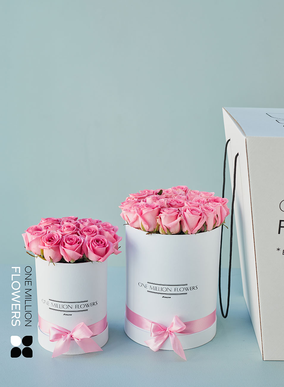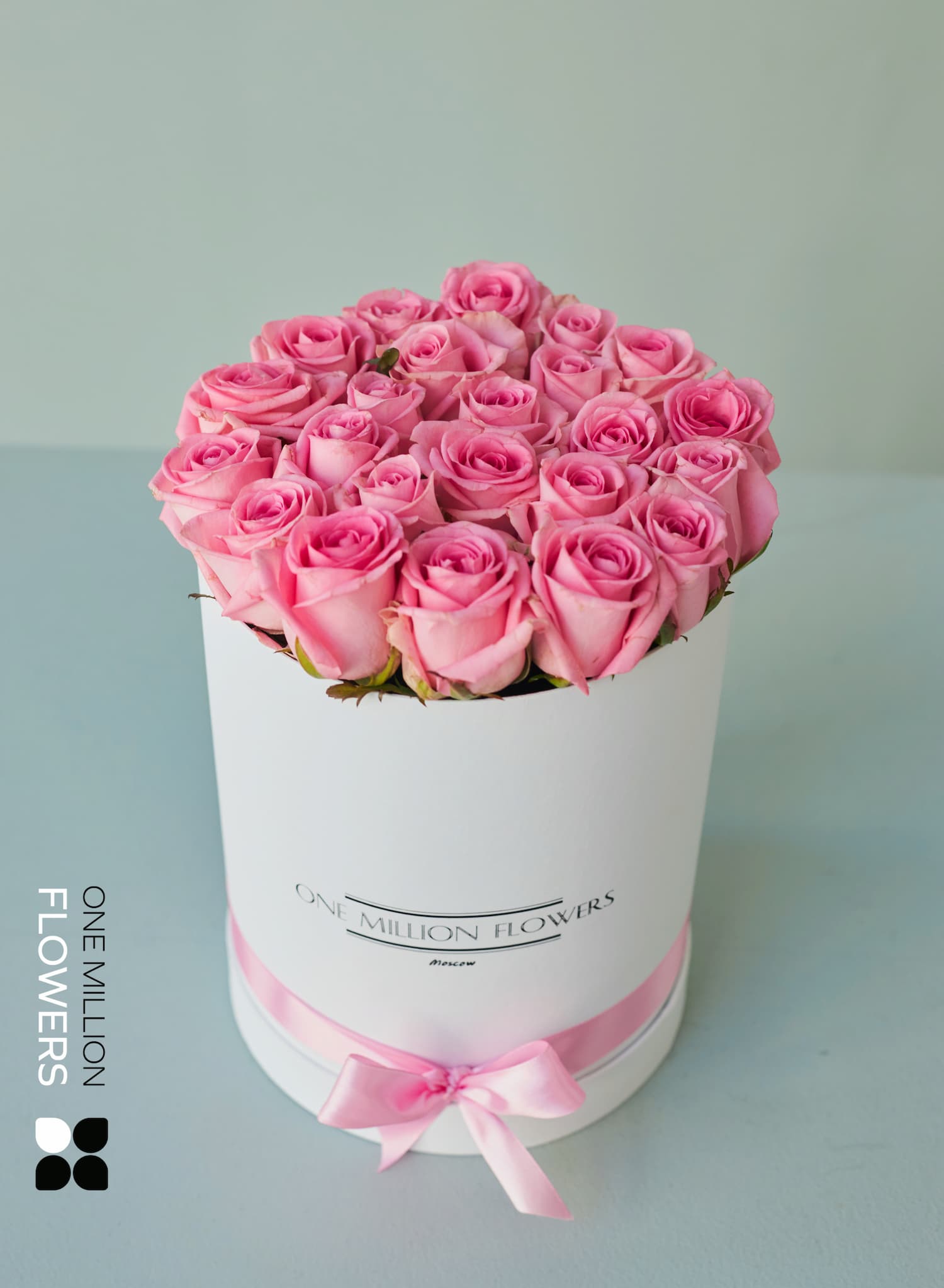 Оригинальная коробка Mini White является поистине потрясающим акцентом, который дополняет красоту роз. Этот элементарный, но эффектный дизайн придаст вашему букету простоту и изысканность одновременно.