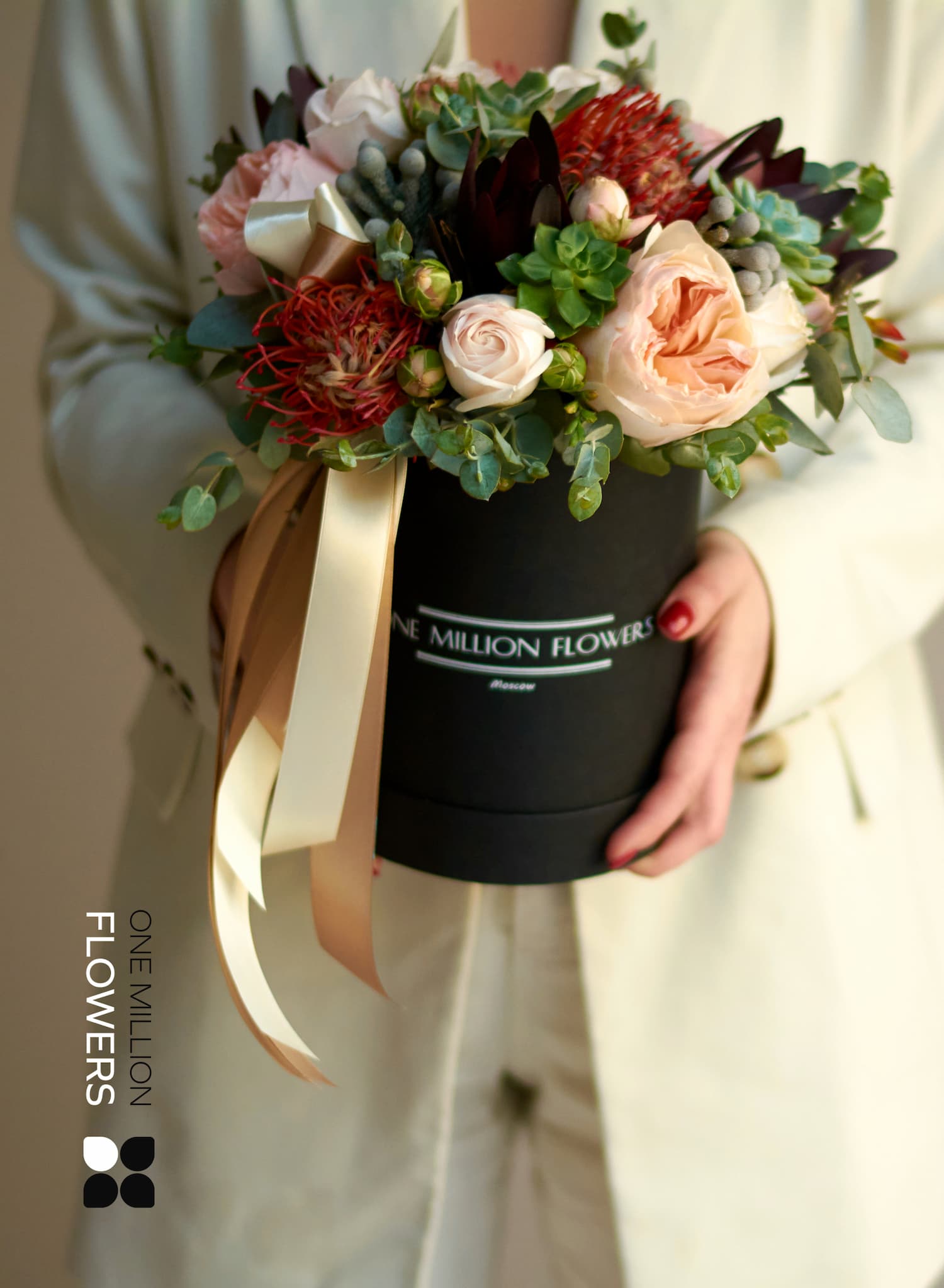 Наши букеты в шляпных коробках мы доставляем по Москве бесплатно. Доставка осуществляется круглосуточно.