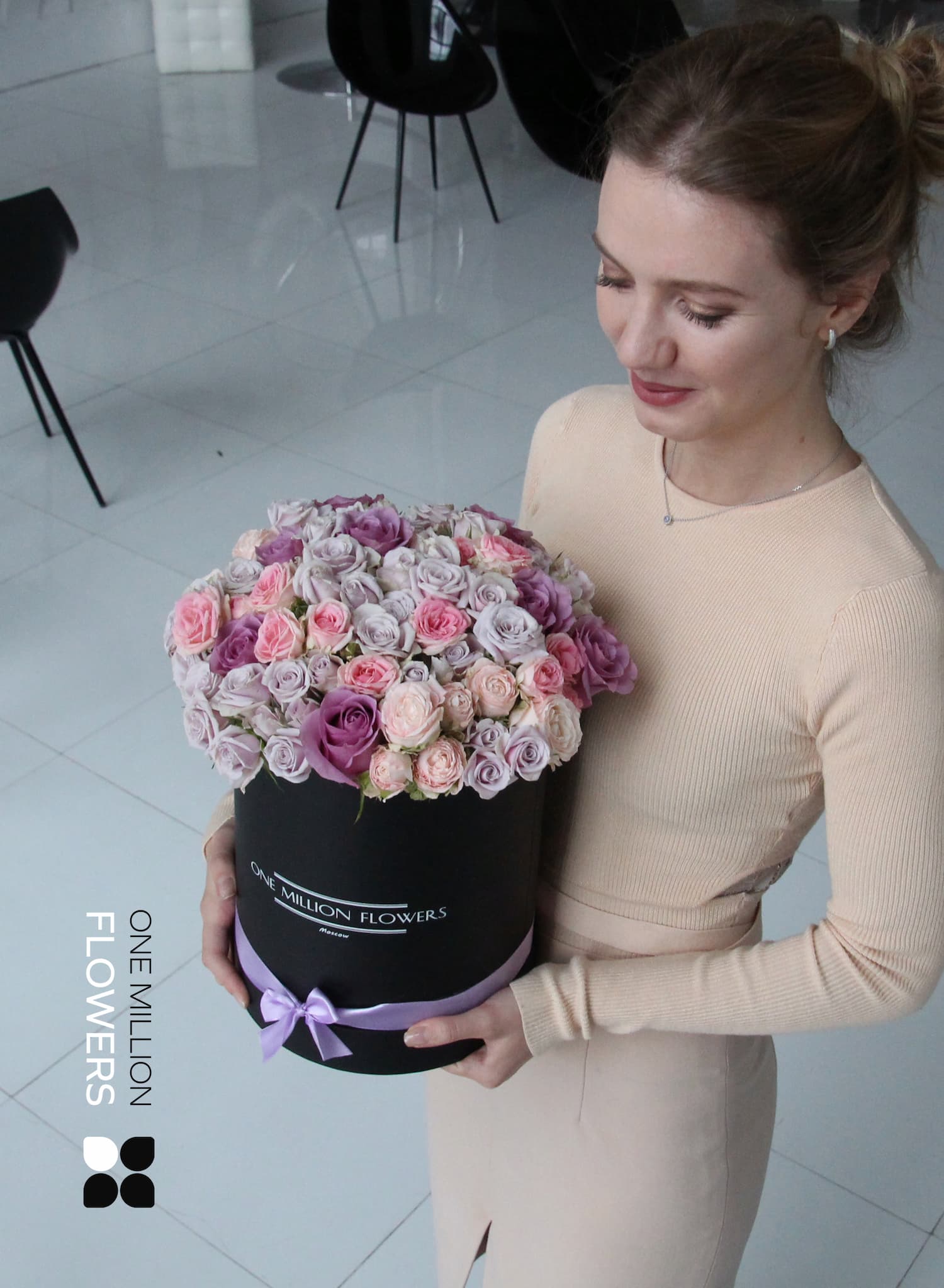 Если вы хотели бы заказать доставку цветов в коробке, но не знаете точного адреса получательницы, то просто укажите в комментарии к заказу ее контактный номер. Мы сами деликатно узнаем у нее удобное для нее место и время.
