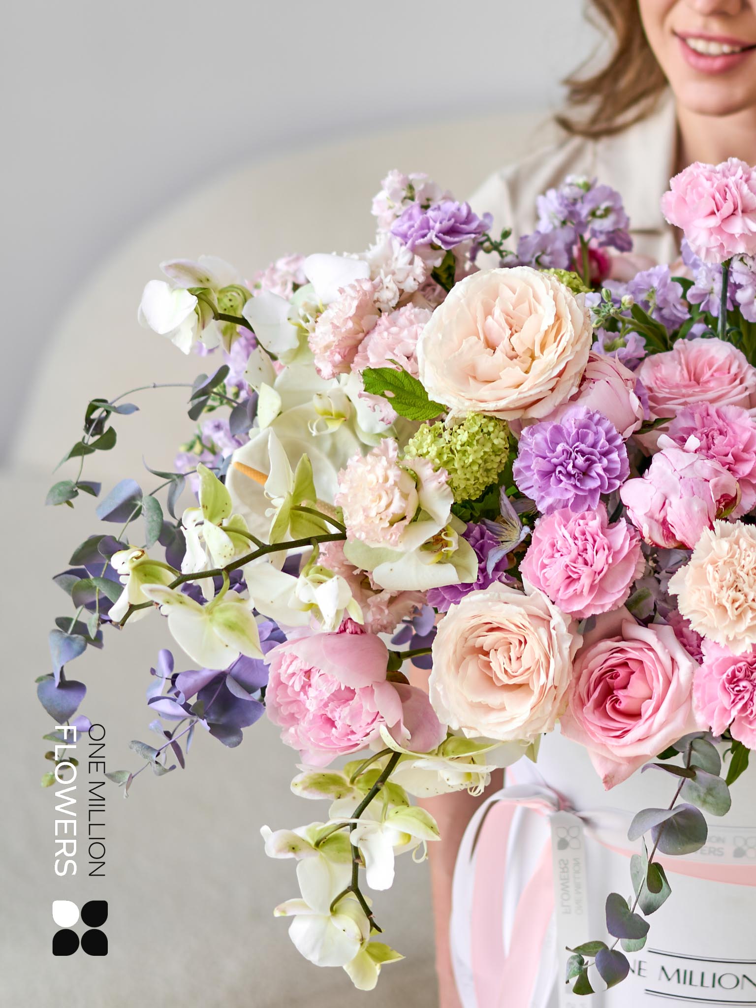 Если вы хотели бы заказать доставку цветов в коробке, но не знаете точного адреса получательницы, то просто укажите в комментарии к заказу ее контактный номер. Мы сами деликатно узнаем у нее удобное для нее место и время.