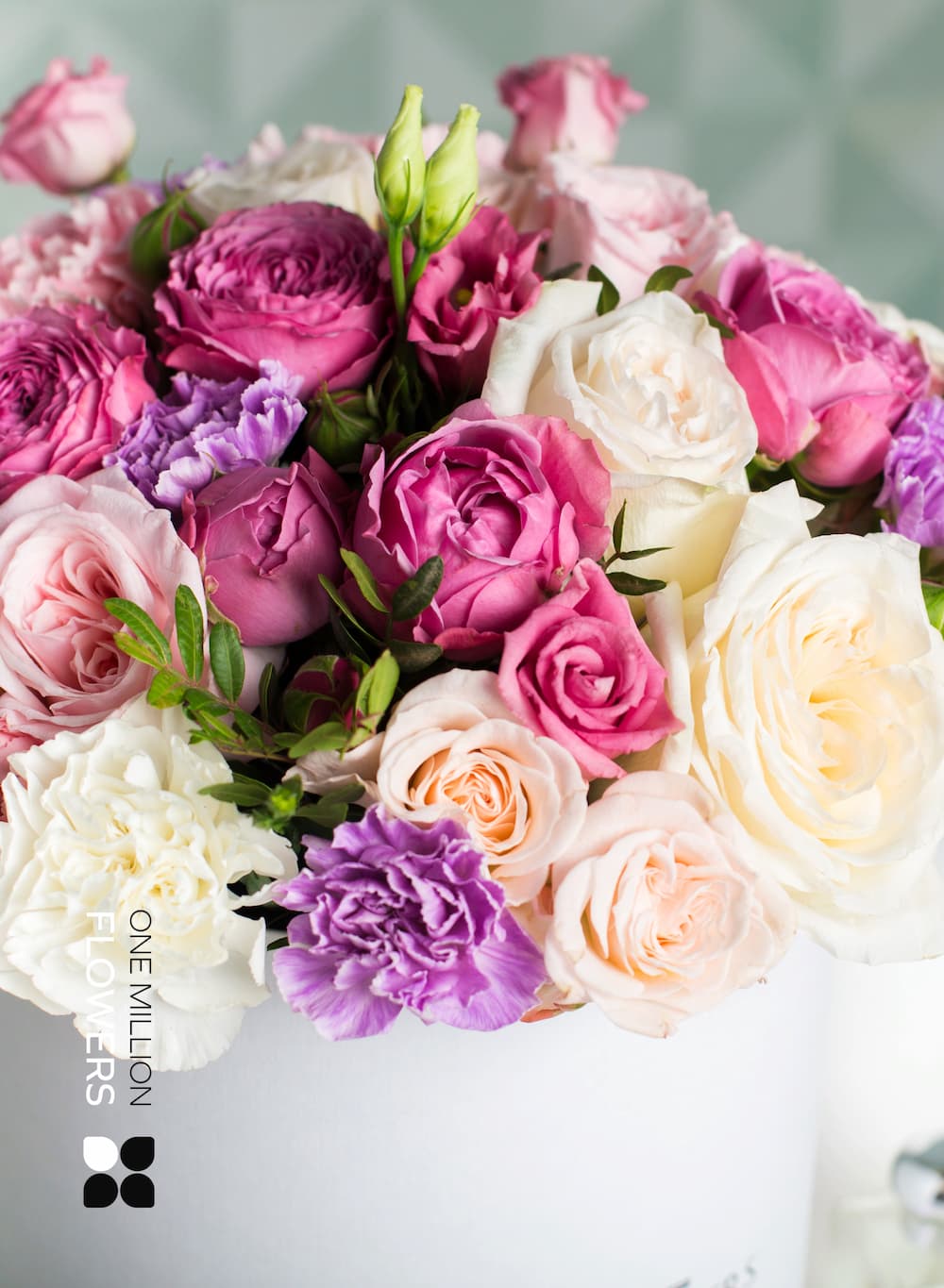 Коробка "Прауд" White включает в себя великолепные цветы, которые сделают ваш подарок незабываемым. В каждом букете вы найдете 5 белых роз, 5 кустовых роз Мисти Баблз, 5 белых диантусов (гвоздик), 1 коробку Midi White, 5 сиреневых диантусов (гвоздик), 4 белые эустомы и 6 нежных кремовых кустовых роз Бомбастик. Это настроение весенней свежести в каждой детали!