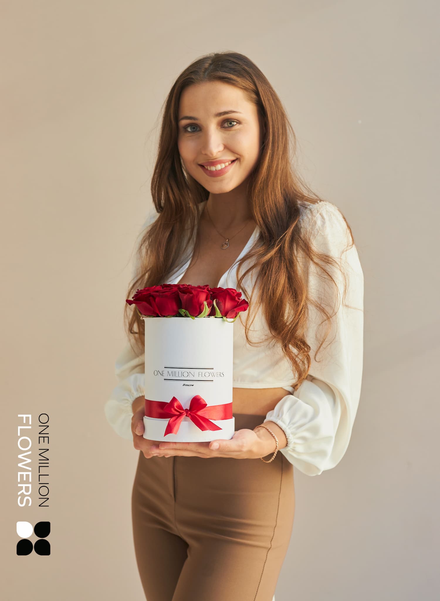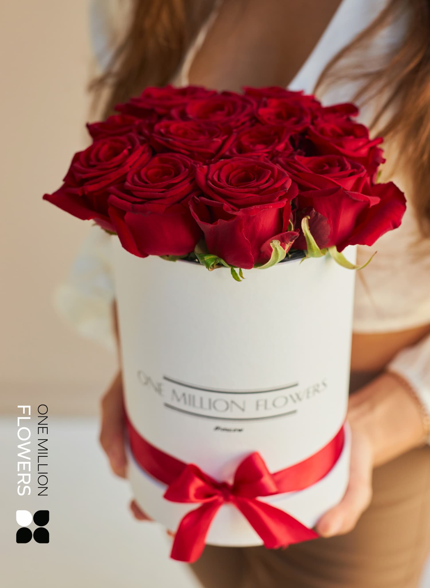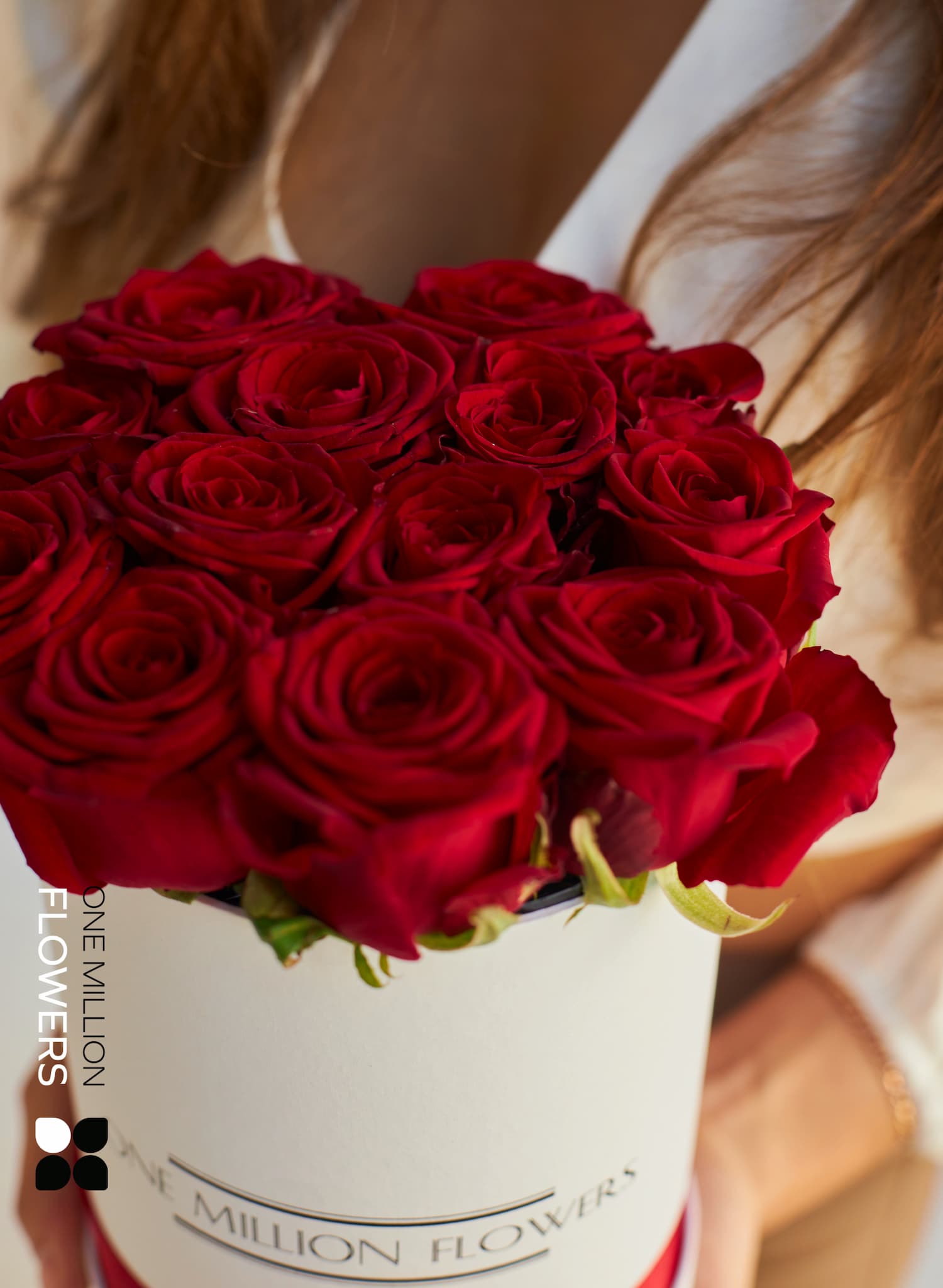 Внутри коробки находится 17 великолепных красных роз, высотой 40 см. Каждая роза излучает роскошь и страсть, создавая запоминающийся визуальный акцент. Эти цветы идеально подходят для выражения чувств, будь то любовь, признание или благодарность. Красные розы класса «Рэд Наоми» известны своим насыщенным цветом и долговечностью, что позволяет им радовать глаза долго после получения.