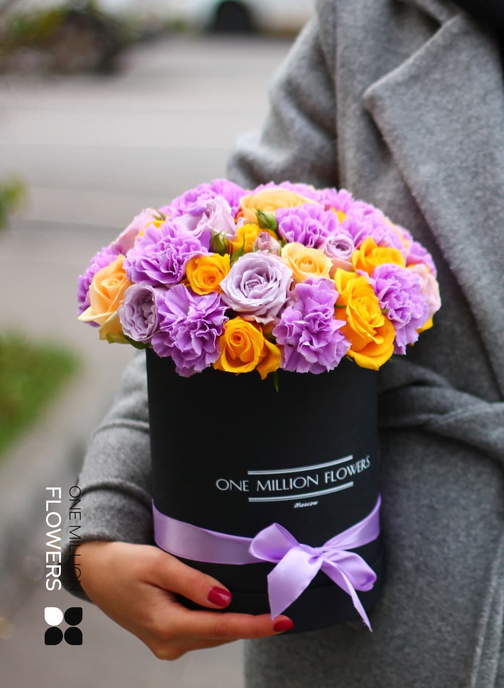Если вы хотели бы заказать доставку цветов в коробке, но не знаете точного адреса получательницы, то просто укажите в комментарии к заказу ее контактный номер. Мы сами деликатно узнаем у нее удобное для нее место и время.