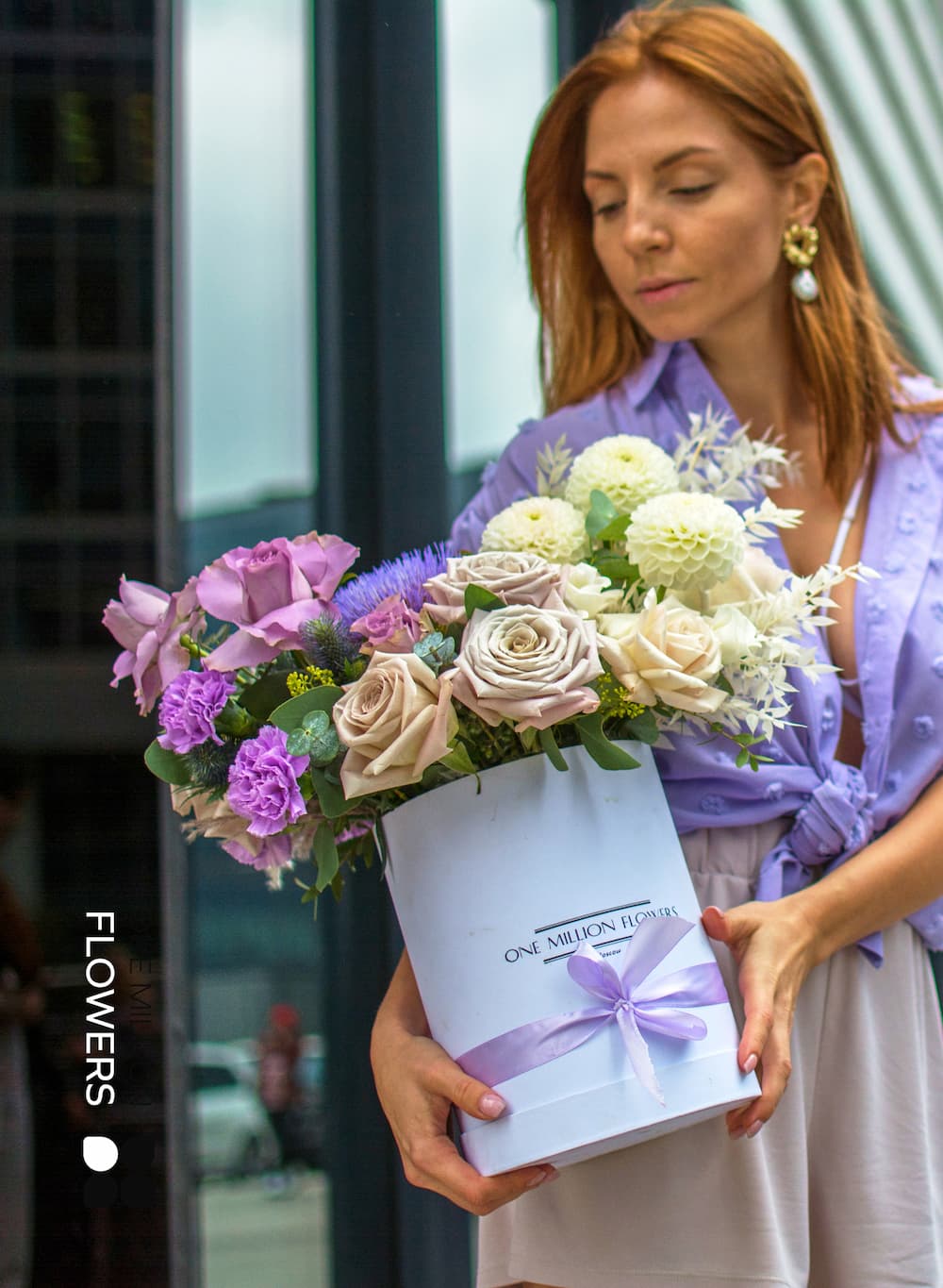 Если вы хотели бы заказать доставку цветов в коробке, но не знаете точного адреса получательницы, то просто укажите в комментарии к заказу ее контактный номер. Мы сами деликатно узнаем у нее удобное для нее место и время.
