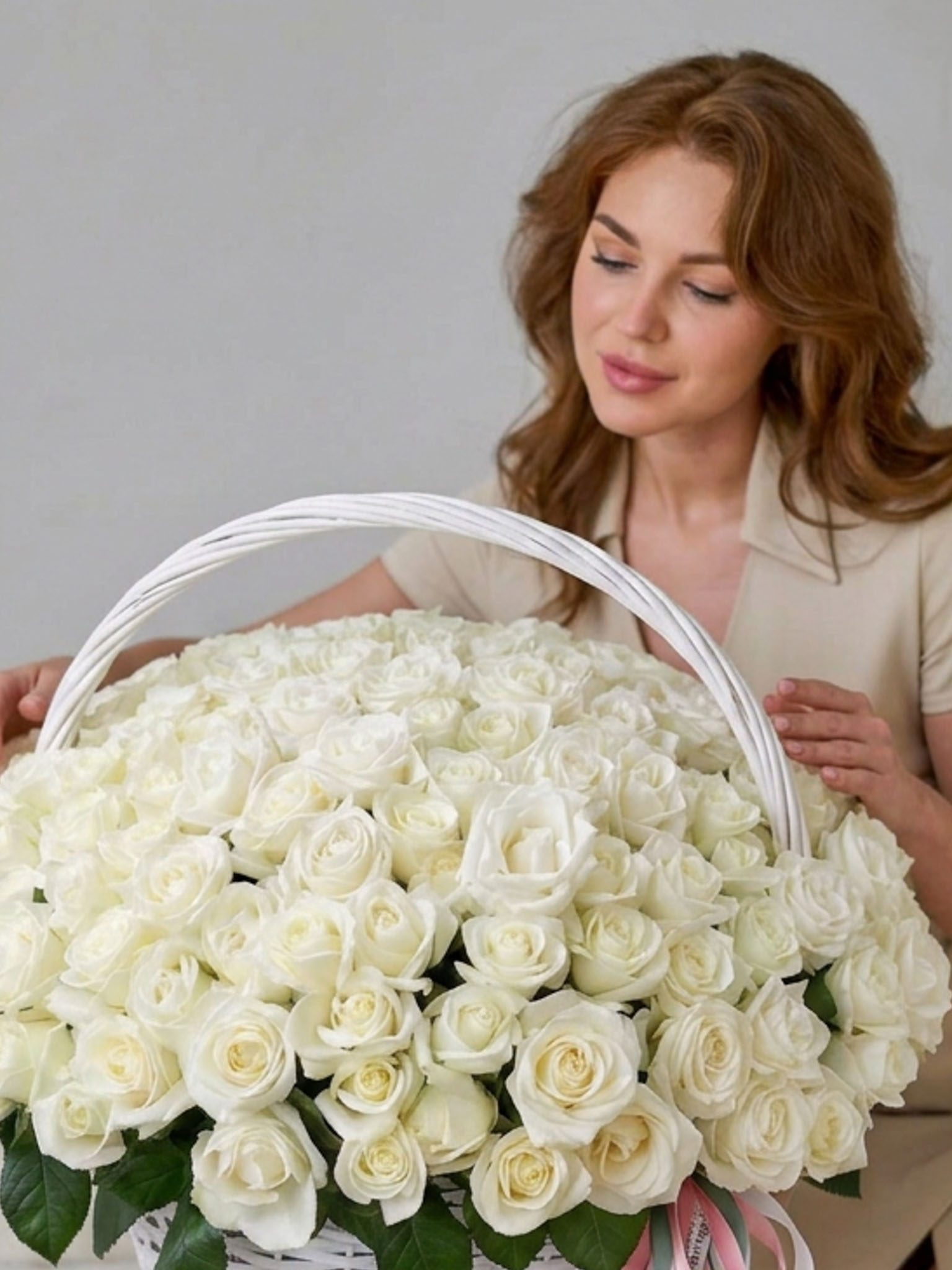 Дарите частичку эстетического наслаждения с помощью букета "Корзина из 101 белой розы Аваланш" - олицетворение прекрасного!